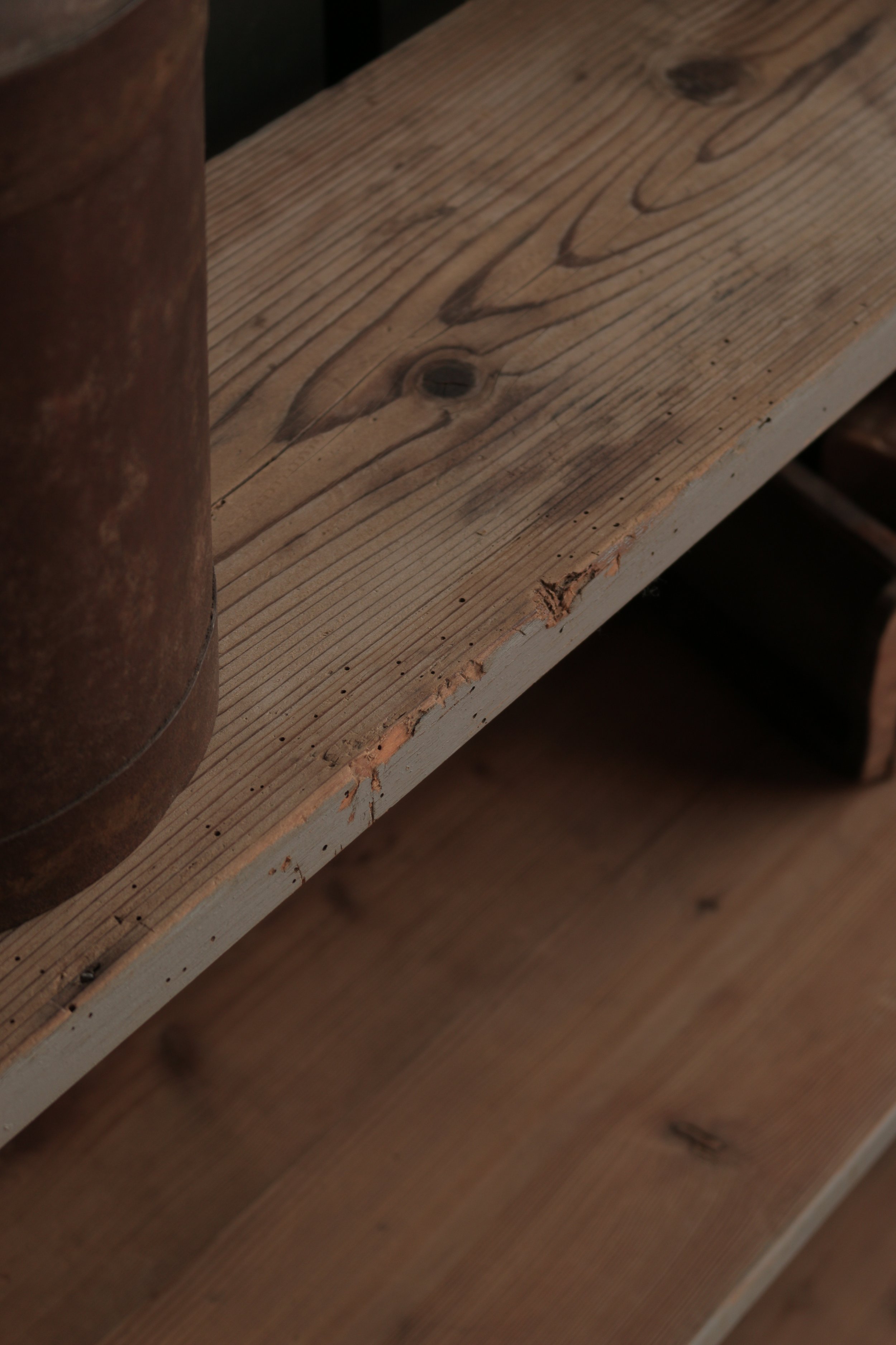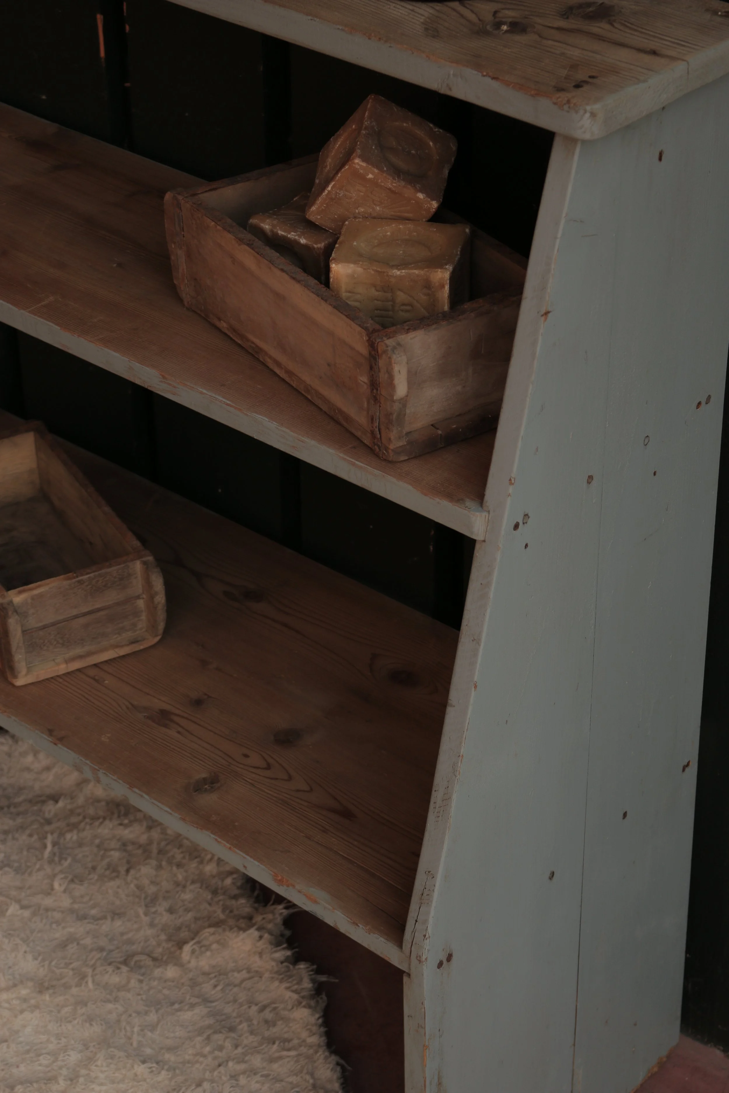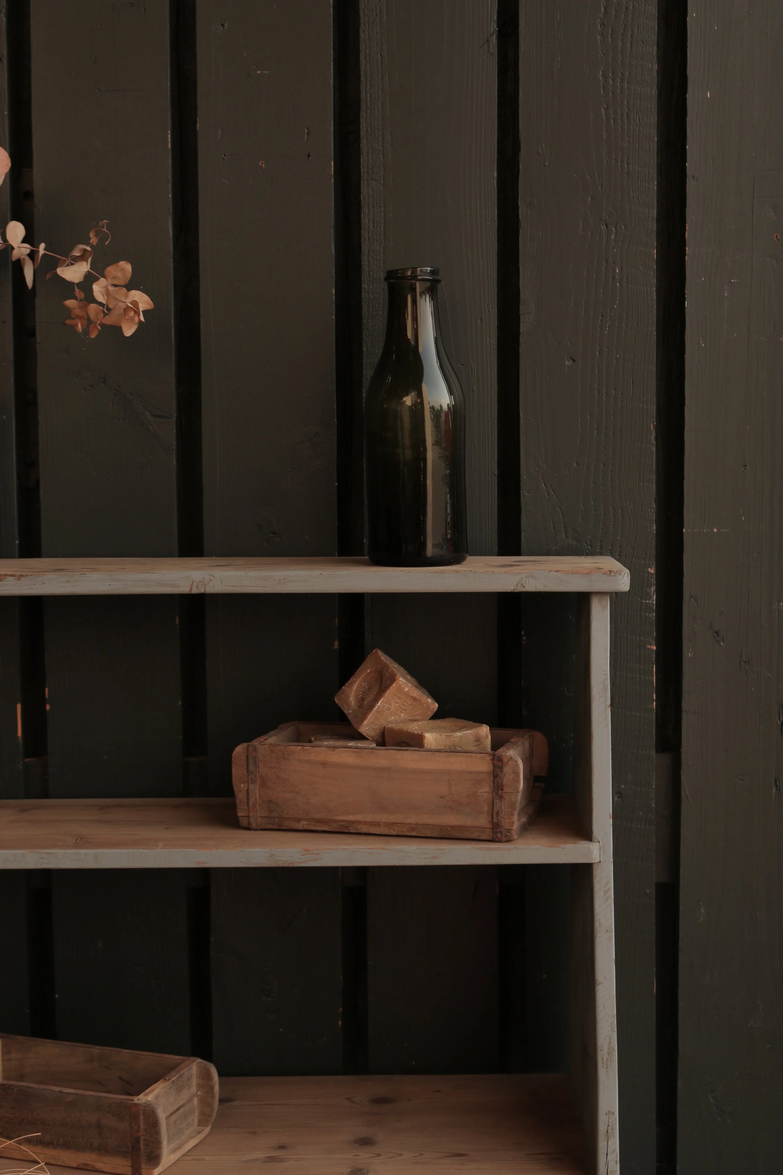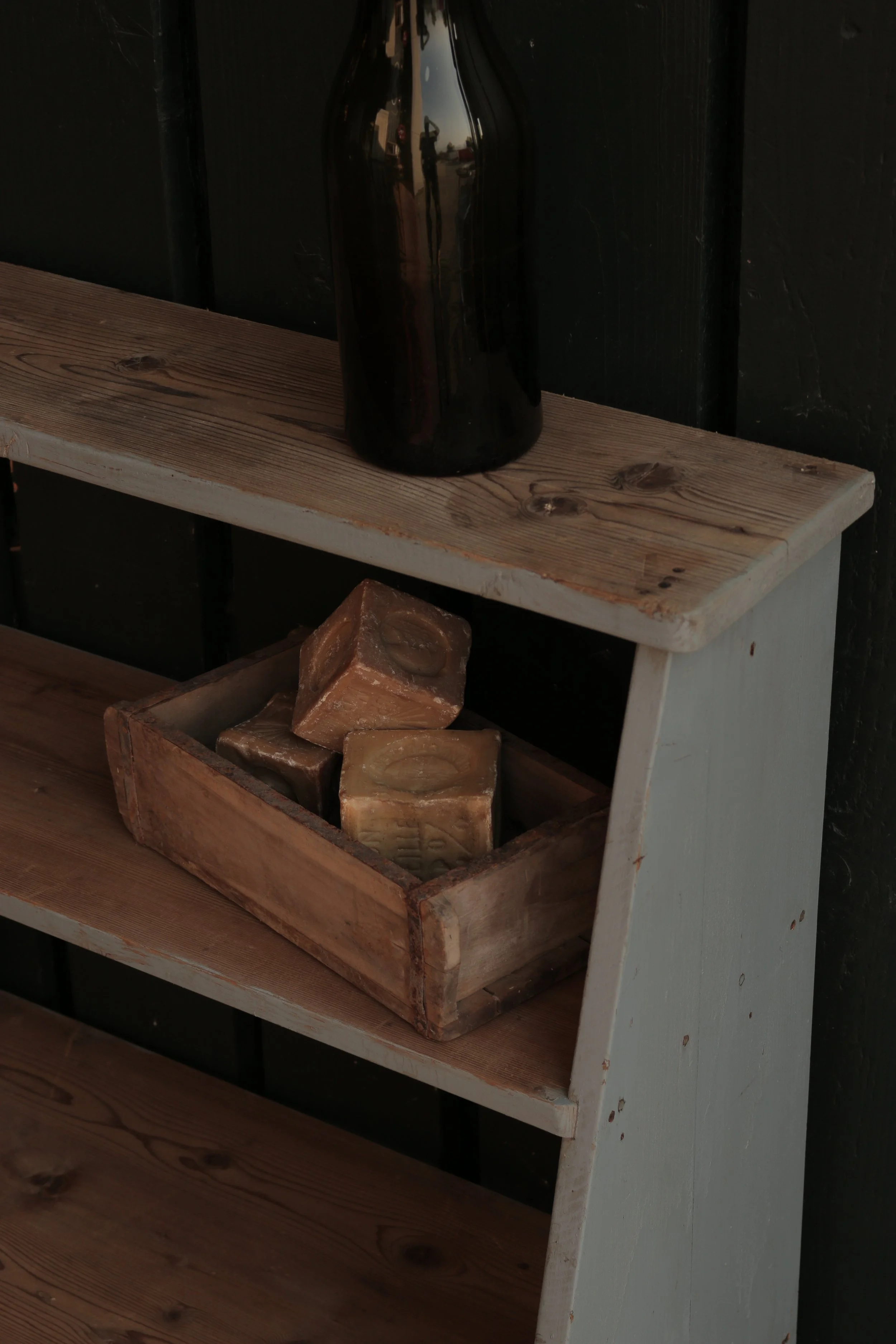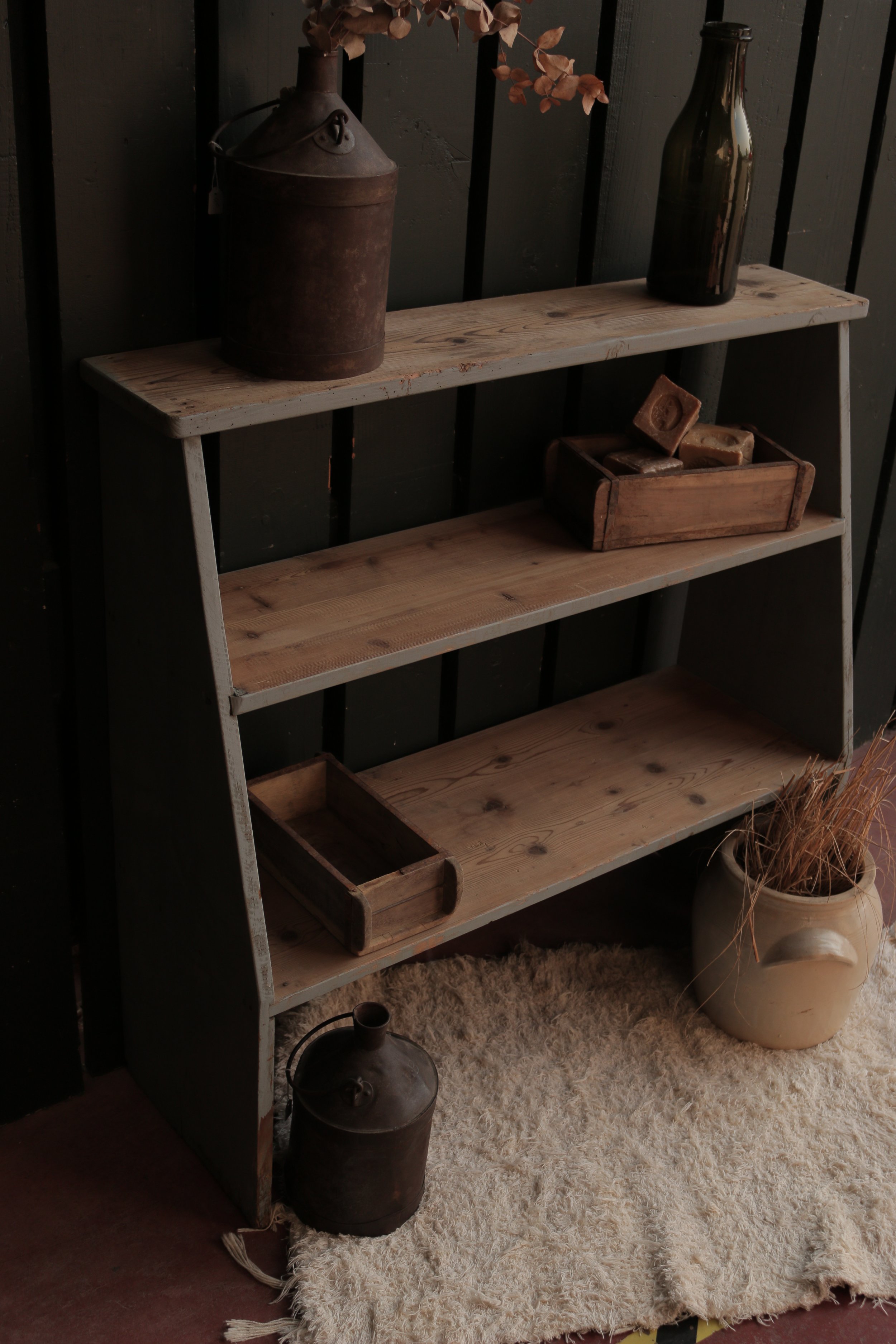 Cette jolie étagère ancienne a conservé tout le charme de son histoire. Restée dans son jus, avec sa couleur naturelle patinée par le temps, elle apporte une authenticité unique à votre intérieur. Les planches, soigneusement poncées, révèlent la beauté du bois et lui donnent un aspect brut et chaleureux.